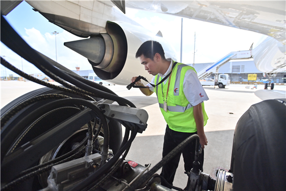 潘陳表示:“現(xiàn)在很多人都說(shuō)00后是‘溫室里的花朵’,我不同意。我們00后也‘曬得陽(yáng)光淋得雨’,也能吃苦也能擔(dān)起擔(dān)子,我們知道只有踏踏實(shí)實(shí)學(xué)技術(shù)、強(qiáng)本領(lǐng),才能收獲成長(zhǎng),才會(huì)有所提高?!迸岁惐硎?#xff0c;現(xiàn)在是航班生產(chǎn)的旺季,正是缺人手的時(shí)候,保障好旺季航班、服務(wù)好旅客出行是自己的職責(zé)和使命。另一方面,從自身發(fā)展來(lái)說(shuō),他也希望能夠加快學(xué)習(xí)的步伐,盡早完成從“勤務(wù)機(jī)務(wù)”到“維修工程師”再到“放行工程師”的“升級(jí)”?!澳軌颡?dú)立放行一個(gè)航班,是我的目標(biāo)和夢(mèng)想,這意味著我那時(shí)擁有了成熟的技術(shù)、有了承擔(dān)責(zé)任的能力、能夠肩負(fù)起旅客和公司的信任,我將為此而不斷努力?!?/p>