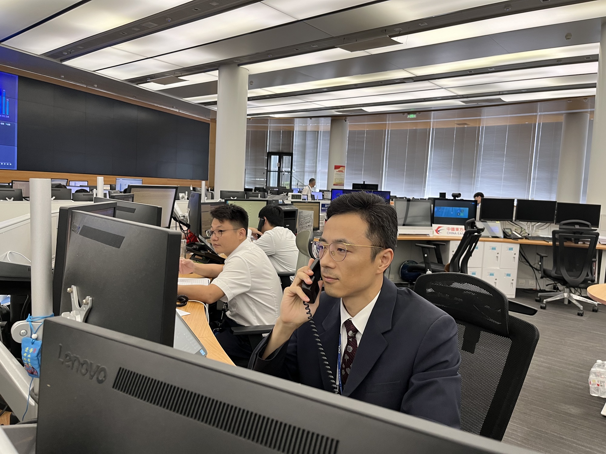 暑運(yùn)旺季的東指中心席位,一天24小時(shí),都伴隨著這樣此起彼伏的電話鈴聲。陳春益所在的團(tuán)隊(duì)有4個(gè)人,成員有運(yùn)行主任、運(yùn)行經(jīng)理、助理和協(xié)理,他們堅(jiān)守在航班運(yùn)行決策指揮第一線?!拔覀兠總€(gè)人都分工明確,但是第一時(shí)間接聽(tīng)各單位各站點(diǎn)打來(lái)的電話,是我們共同的任務(wù)。”陳春益說(shuō):“電話里反饋的都是可能影響航班有序運(yùn)行的突發(fā)事件,一定要盡快處置……”