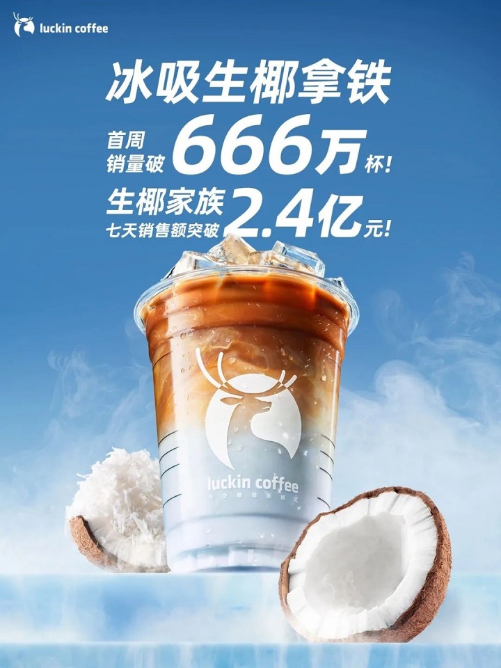 數(shù)據(jù)是最好的證明:近日,瑞幸官方宣布「生椰拿鐵」上市兩周年銷量已突破3億杯!最近另一款新品「冰吸生椰拿鐵」,上市一周銷量就突破了666萬杯,打破了2022年10月由「生酪拿鐵」創(chuàng)下的上市一周659萬杯的新品銷量紀錄。