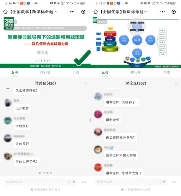 3月17日,萬(wàn)唯特邀全國(guó)中考命題前沿省市專家,以新課標(biāo)導(dǎo)向?yàn)榍腥朦c(diǎn),聚焦“好題”在二輪復(fù)習(xí)的使用場(chǎng)景,通過(guò)對(duì)中考命題評(píng)估和全國(guó)考改趨勢(shì)的分析、好題選用標(biāo)準(zhǔn)的闡述等,策劃中考七科(不含地理、生物學(xué))公益?zhèn)淇贾辈フn。內(nèi)容針對(duì)性、實(shí)用性強(qiáng),吸引了超20萬(wàn)人次老師觀看,對(duì)老師的教學(xué)和備考有非常積極的指導(dǎo)作用。