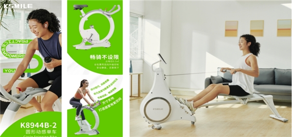KSMILE為新世代年輕人打造的居家個性健身品牌,將健身與娛樂、智能科學(xué)、自我管理融為一體,為家用健身行業(yè)注入新的活力。本屆體博會KSMILE展示了智能科技與顏值兼?zhèn)涞呐懿綑C、健身車、劃船機等產(chǎn)品,讓現(xiàn)場觀眾親身體驗康樂佳為家庭用戶提供的高品質(zhì)健身器材??梢灾攸c關(guān)注K8944B-2圓形動感單車、K8328BSW自發(fā)電立式車、K8750TP-1等產(chǎn)品。