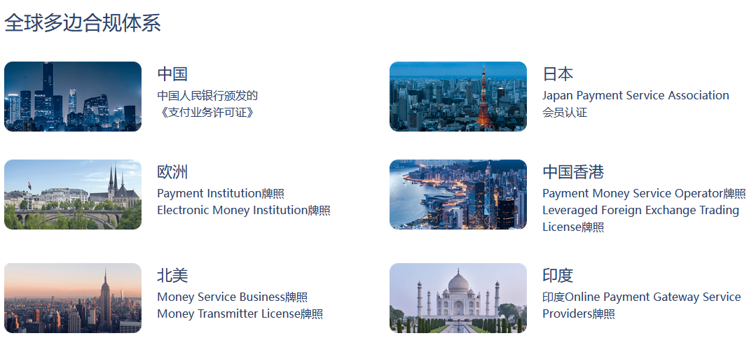作為資金流服務(wù)的關(guān)鍵環(huán)節(jié),支付在多數(shù)國家都是重點(diǎn)監(jiān)管的項(xiàng)目。在跨境匯兌、資金分發(fā)等服務(wù)中,支付牌照作為展業(yè)的基礎(chǔ),是企業(yè)合規(guī)能力的直接體現(xiàn)。多年來,PingPong福貿(mào)始終堅(jiān)持“牌照先行,資質(zhì)先行”理念,致力于在全球范圍內(nèi)多個主要經(jīng)濟(jì)體國家及地區(qū)爭取獲得合規(guī)牌照,以打造堅(jiān)實(shí)穩(wěn)固的全球多邊合規(guī)體系。目前已擁有中國、歐洲、美國、日本、印度、澳大利亞等主要經(jīng)濟(jì)體的數(shù)十張支付類牌照及認(rèn)證資質(zhì),是國內(nèi)少有的雙邊持牌支付企業(yè)。
