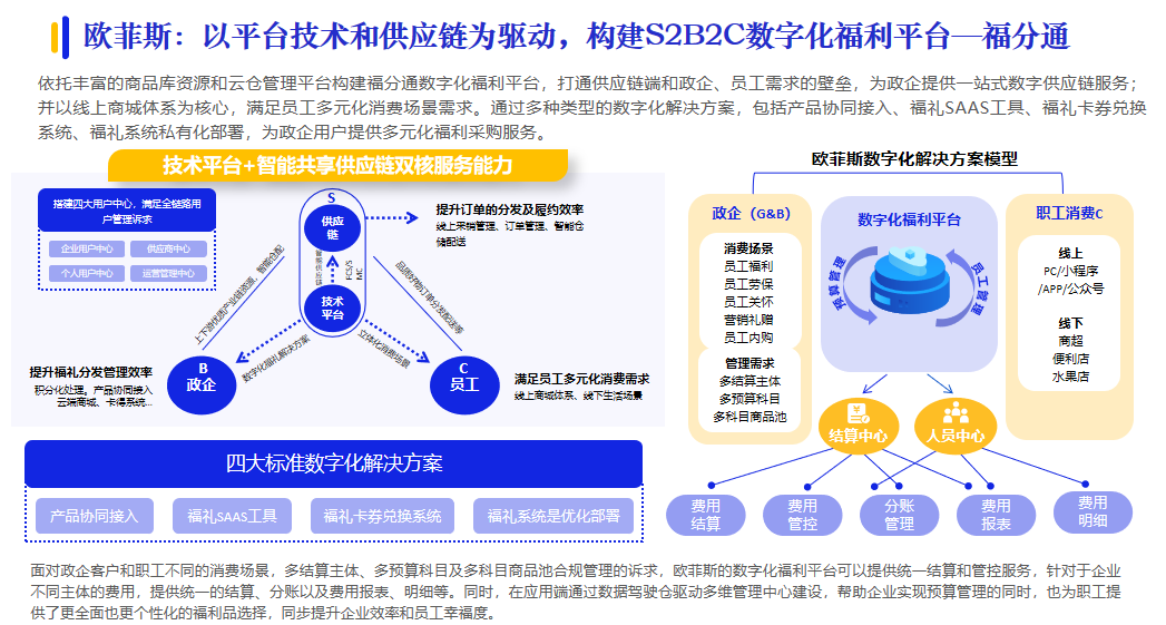 歐菲斯以平臺(tái)技術(shù)和供應(yīng)鏈為驅(qū)動(dòng),構(gòu)建S2B2C數(shù)字化福利平臺(tái)。