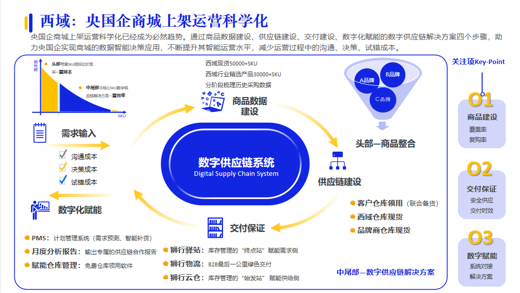 對(duì)于供應(yīng)商來說,為用戶提供供應(yīng)鏈服務(wù)是基礎(chǔ)能力,但供應(yīng)鏈的“精細(xì)化”運(yùn)營才是考驗(yàn)供應(yīng)商的核心能力。例如:西域依托平臺(tái)積累和沉淀大量的用戶、商品和交易數(shù)據(jù),提供精細(xì)化的數(shù)據(jù)、商品、庫存和交付的運(yùn)營服務(wù),進(jìn)行深度的數(shù)據(jù)治理,幫助用戶精選優(yōu)質(zhì)商品和智能備貨。
