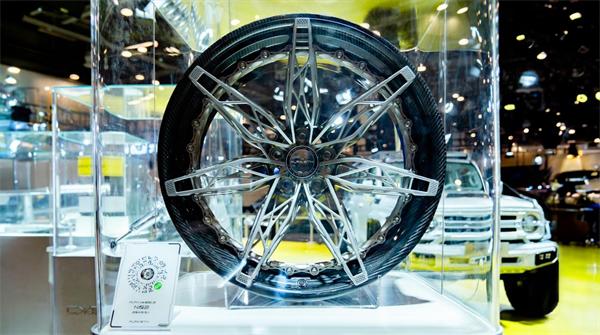 現場展出了國內首個采用鈦合金3D打印+碳纖維工藝融合的概念輪轂,輪輞實現全碳纖維一體成型,整體為2片式結構。輻條鏤空設計靈感來自于鳥巢等建筑行業(yè)的力學結構,呈現錯綜復雜又整體有序,顛覆人們固有想象。據了解,這款命名為N02-3D的概念輪轂是超境汽車的前瞻性預研產品,暫不進行銷售。