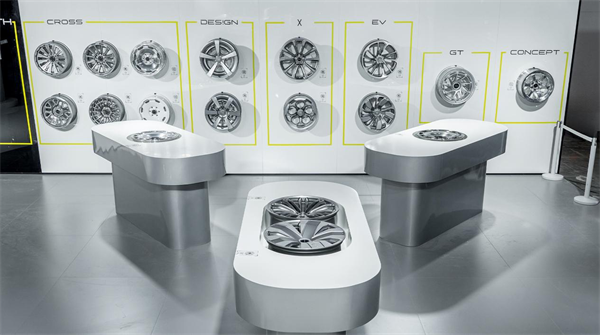 現場還展示了PLAY.STH的5個系列13款輪轂,分別為CROSS系列、X系列、GT系列、DES!GN系列、EV系列等,多款造型適配不同用車場景。這5個系列輪轂均為6061-T6 鋁合金材質的鍛造輪轂,結構強度高,成品輕量化。據了解,其中的CR01\CR02\CR03 款是國內首批獲得 LM 認證的輪轂,PLAY.STH所有輪轂產品在上市前均會主動完成車輪沖擊性能試驗、車輪動態(tài)彎曲疲勞性能試驗、車輪動態(tài)徑向疲勞性能試驗等輪轂三大安全性能試驗,漆膜品控堅持更高要求的車規(guī)級標準。內部輪轂及整車設計團隊溝通配合,確保產品在造型出眾的同時,滿足安全可靠的基本要求。