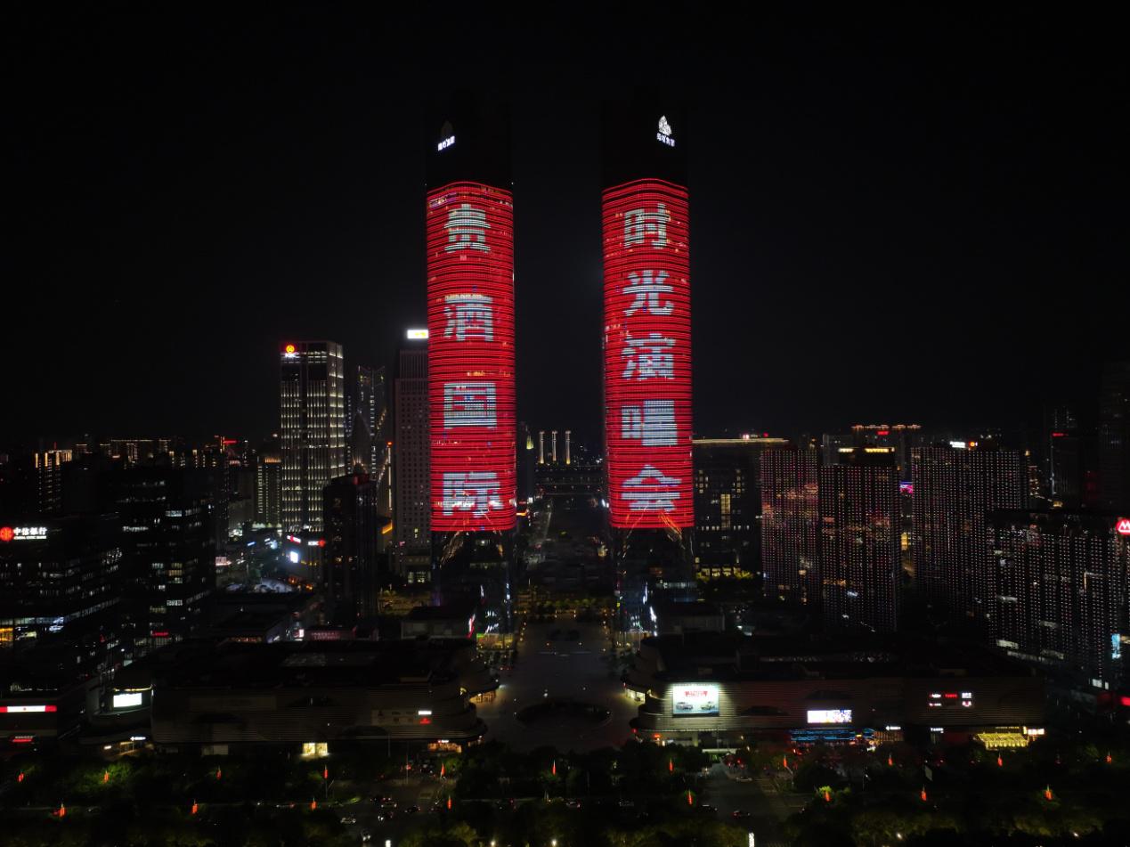 舞臺(tái)上,琥珀歲月,醉心時(shí)光,音樂穿越時(shí)空,喚起記憶的波瀾。演唱會(huì)以舞蹈《青花瓷》拉開序幕,舞者手中的青花瓷瓶,配合東方神韻的輕柔舞姿,這一切仿佛傾訴著貴酒國(guó)際對(duì)傳統(tǒng)文化的傳承與熱愛,將音樂與舞蹈的融合演繹得淋漓盡致。毛一涵、劉航、莫斯?jié)M、王強(qiáng)等依次登臺(tái),用歌聲跨越時(shí)光,共同體驗(yàn)音樂與時(shí)光交織的魅力。一場(chǎng)橫跨味覺與聽覺的盛會(huì),應(yīng)和滕王閣浩瀚雄姿?!队成郊t》、《紅旗飄飄》、《青藏高原》、《秋天不回來(lái)》等經(jīng)典旋律,讓現(xiàn)場(chǎng)觀眾感受到了濃郁的中國(guó)紅色文化與江西文化的底蘊(yùn)。觀眾們仿佛穿越時(shí)光,重溫那些難忘的年華,共同感懷著芳華歲月的美好回憶。