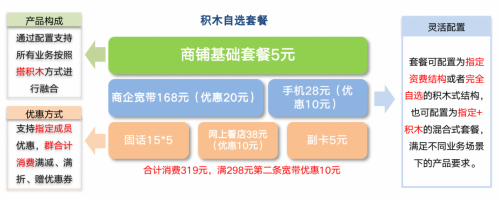 思特奇推出“積木式”商品自由組合解決方案并在移 動(dòng)行業(yè)落地應(yīng)用。以一個(gè)必選政企商品作為積木底座,N個(gè)可選熱門商品作為積木塊的模式,將單一政企業(yè)務(wù)復(fù)雜參數(shù)變?yōu)榱斜硎降暮?jiǎn)單勾選,解決政企業(yè)務(wù)參數(shù)復(fù)雜一線無(wú)法快速訂購(gòu)的痛點(diǎn),同時(shí)將融合優(yōu)惠靈活分?jǐn)傇诟鱾€(gè)商品上,提供滿減滿折多種優(yōu)惠方式,解決了優(yōu)惠模式單一的痛點(diǎn)。實(shí)現(xiàn)資費(fèi)標(biāo)準(zhǔn)透明,現(xiàn)場(chǎng)即辦即走。