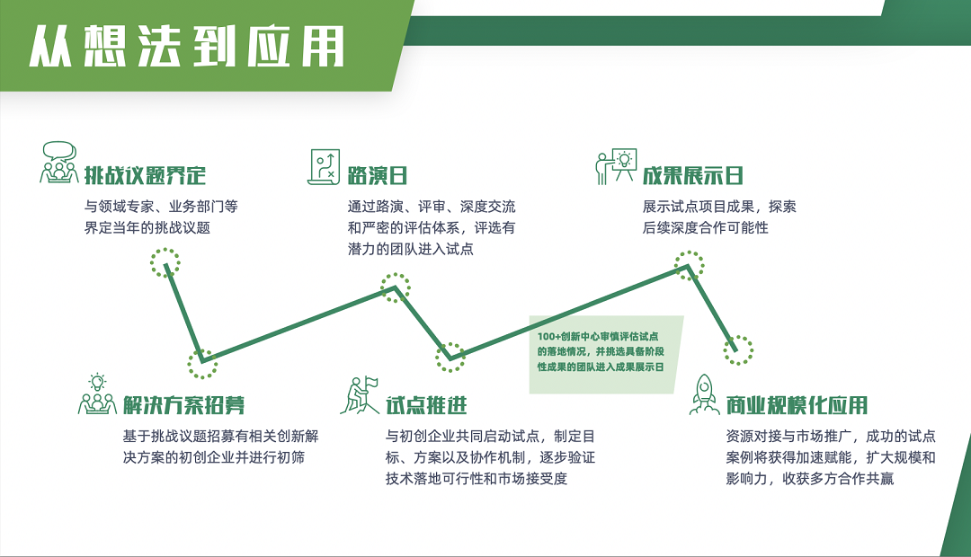今年,“100+創(chuàng)新中心”將在廣度和深度上實(shí)現(xiàn)全面提升,以本地為中心,放眼全球,以更開放的姿態(tài)邀請(qǐng)更多品牌方、投資人和行業(yè)伙伴加入,賦能更多有潛力的創(chuàng)新創(chuàng)業(yè)解決方案落地 。在這個(gè)過程中,你的收獲遠(yuǎn)不止于此: