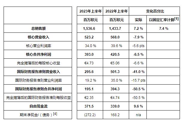所有財(cái)務(wù)數(shù)據(jù)均以百萬歐元(€m)為單位。除非另有說明,本報(bào)告的業(yè)績涵蓋2023年6月30日之前的6個(gè)月期間(2023年上半年)和2023年6月30日之前的3個(gè)月期間(2023年第二季度),而進(jìn)行數(shù)據(jù)對比的對象為2022年6月30日之前的6個(gè)月期間(2022年上半年)和2022年6月30日之前的3個(gè)月期間(2022年第二季度)。除非另有說明,否則評(píng)論基于2023年上半年的業(yè)績。所有評(píng)論和較之前業(yè)績的比較均不包括2022年7月剝離的多元健康(CHC)業(yè)務(wù)的業(yè)績。