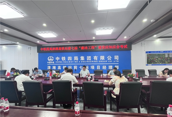 為進一步增強項目全員廉潔自律意識,積極響應津濰高鐵“廉潔工程”建設工作全面開展,7月24日,中鐵四局一公司津濰高鐵站前七標項目黨總支組織項目經(jīng)理部全體員工開展“廉潔工程”建設應知應會知識測試活動,以考促學,以學促干,提升項目全體員工“廉潔工程”建設工作的主動性、積極性。