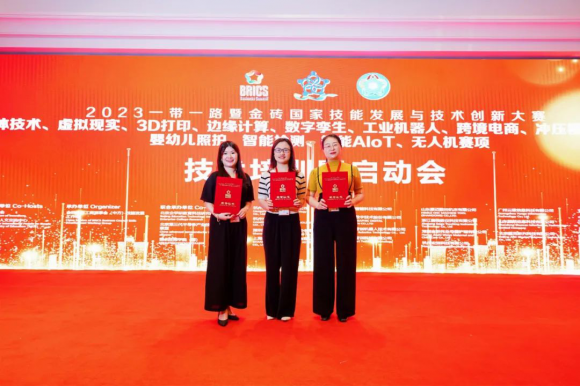 會(huì)上,金職偉業(yè)總經(jīng)理潘建明、董事長(zhǎng)助理兼品牌運(yùn)營總監(jiān)周娟、技術(shù)研發(fā)中心主任陳萬方、副主任李偲婧受聘為2023一帶一路暨金磚國家技能發(fā)展與技術(shù)創(chuàng)新大賽技術(shù)委員會(huì)技術(shù)委員。同時(shí),金職偉業(yè)成功入選一帶一路暨金磚國家技能發(fā)展國際聯(lián)盟會(huì)員單位,并被授予榮譽(yù)證書。