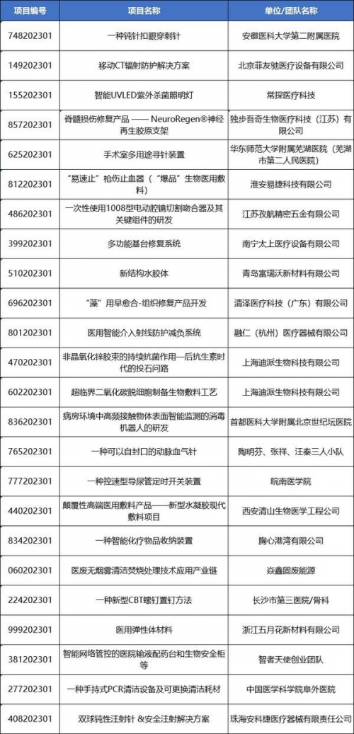 醫(yī)用材料類別賽入圍項目