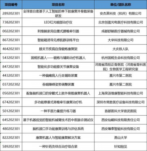康復(fù)器械及輔具類別賽入圍項目
