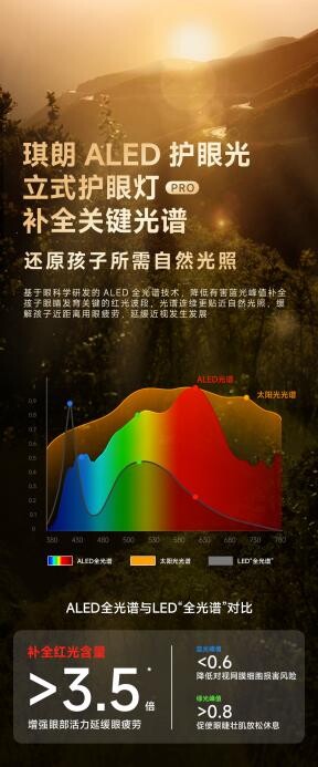為此,琪朗以“為人類創(chuàng)造舒適的健康光環(huán)境”為使命,致力打造中國千萬兒童房專用護眼光環(huán)境。2022年,琪朗聯(lián)合中山大學中山眼科中心共同研發(fā)全新專利技術ALED護眼光。新一代ALED護眼光其原理是打造與太陽光的可見光譜接近的照明光譜,通過降低有害藍光峰值,補全孩子眼睛發(fā)育關鍵的紅光波段,緩解孩子近距離用眼疲勞,延緩近視發(fā)生發(fā)展。自從愛迪生發(fā)明光源以來,經(jīng)歷了白熾燈、鹵素燈、熒光燈、LED燈后,ALED護眼光是人類史上最近接太陽光譜的光源,其光源更護眼,更舒適,更健康。