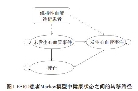 研究采用Markov模型法,將模型結(jié)構(gòu)分為未發(fā)生心血管事件(NCVD)、發(fā)生心血管事件(CVD)、死亡(death)三個(gè)獨(dú)立狀態(tài),模擬接受常規(guī)血液凈化以及聯(lián)合HA樹(shù)脂血液灌流的ESRD患者疾病進(jìn)程,計(jì)算接受不同治療方案患者的疾病成本與質(zhì)量調(diào)整壽命年(QALY)。模型循環(huán)周期為26周,研究時(shí)限為終生,評(píng)估不同治療方案患者的疾病成本與質(zhì)量調(diào)整壽命年。