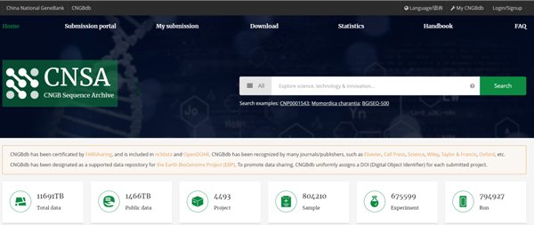 CNGBdb的存儲功能由國家基因庫序列歸檔系統(tǒng)(CNSA)負責。CNSA是一個支撐全球組學研究成果匯交和管理的系統(tǒng),致力于多組學數(shù)據(jù)(基因組、轉錄組、代謝組、單細胞和空間轉錄組等)的開放和共享,為全球科研人員提供更加安全、穩(wěn)定、可靠、便捷的數(shù)據(jù)歸檔服務,促進多組學數(shù)據(jù)的再利用,推動全球生命科學的發(fā)展。