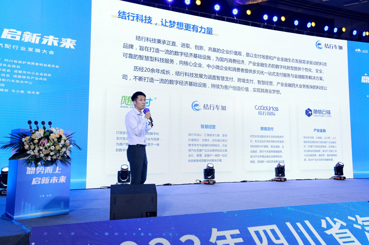 2023年6月11日,由四川省汽車(chē)汽配服務(wù)業(yè)商會(huì)主辦、豆秒好車(chē)集團(tuán)承辦的“2023年四川省汽車(chē)汽配行業(yè)發(fā)展大會(huì)”在成都隆重舉行,本次峰會(huì)以“鼎勢(shì)而上·啟新未來(lái)”為主題,廣邀800+車(chē)商和四川及全國(guó)汽車(chē)行業(yè)商協(xié)會(huì)、政府主管部門(mén)等相聚蓉城,共商行業(yè)的變革與機(jī)遇。結(jié)行科技旗下汽車(chē)資產(chǎn)數(shù)字化服務(wù)平臺(tái)結(jié)行車(chē)加也受邀參會(huì),副總經(jīng)理史云峰先生在會(huì)上做了精彩分享。
