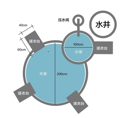 這個(gè)由專(zhuān)業(yè)人員設(shè)計(jì)的洗衣池使用的是旁邊一口老井的清潔水源,冬暖夏涼。由于設(shè)計(jì)巧妙,水流還可以在洗衣過(guò)程中多次利用。同時(shí),四個(gè)帶有石制搓板的洗衣位均勻分布在洗衣池的周?chē)?充分照顧了村民們的社交需求,一邊洗衣服一邊聊天輕松愜意。