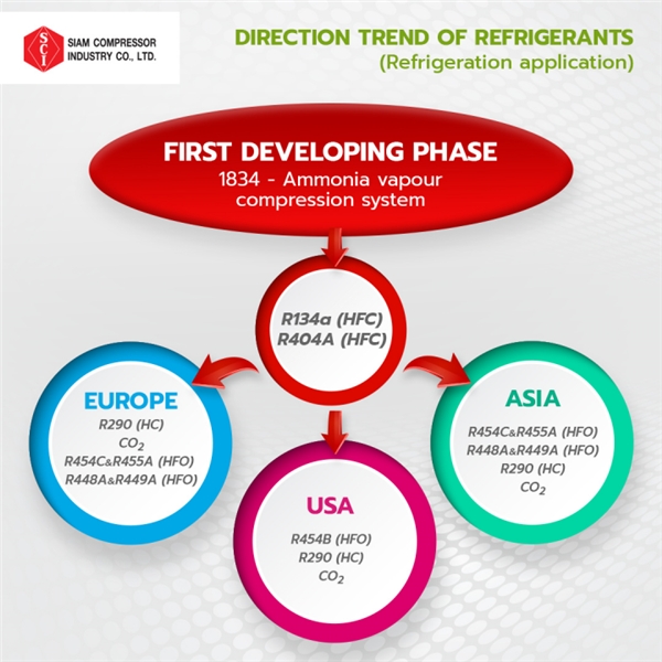 人工制冷始于 17世紀(jì)50 年代中期,1834 年第一個(gè)使用氨的工作蒸汽壓縮系統(tǒng)面世。另一方面,氨有毒且對(duì)健康有害。 直到今天,科學(xué)家們?nèi)栽诶^續(xù)開發(fā)和研究更好的制冷劑。 由于制冷劑在每個(gè)國家/地區(qū)的使用方式不同,為了提供清晰的解釋,我們將按國家/地區(qū)組對(duì)這些趨勢(shì)進(jìn)行細(xì)分。