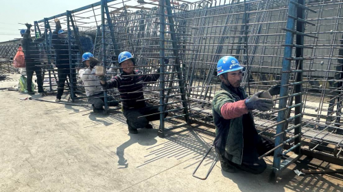門吊機器轟鳴,工人們正忙著綁扎鋼筋、安裝模板、澆筑混凝土,濱淮高速BH7標(biāo)項目施工現(xiàn)場一派忙碌景象。“五一”假期,中鐵七局集團第三工程有限公司260余名建設(shè)者奮戰(zhàn)在施工一線,為了加快施工生產(chǎn)進度,現(xiàn)場工人們頂著灼灼烈日正如火如荼、緊鑼密鼓的掀起一番大干的施工熱潮。他們堅守崗位、默默奉獻,用勞動者最美的身影為自己的節(jié)日增添色彩。