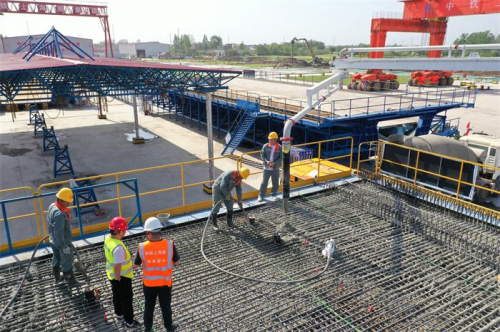4月30日上午,由中鐵上海工程局承建的巢馬城際鐵路5標(biāo)馬鞍山制梁場首孔箱梁順利完成澆筑,標(biāo)志著該梁場正式進(jìn)入試生產(chǎn)階段,為巢馬城際鐵路如期實(shí)現(xiàn)通車目標(biāo)打下了堅實(shí)基礎(chǔ)。