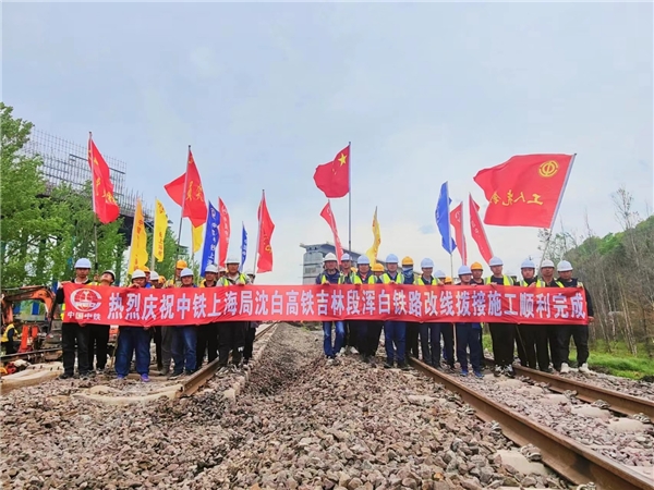 5月25日,經(jīng)過200多名建設(shè)者連續(xù)4個(gè)多小時(shí)的奮戰(zhàn),由中鐵上海工程局承建的沈白高鐵吉林段既有渾白鐵路改線撥接施工順利完成,改移線路成功接入八寶站,形成了新建白山東站在北、渾白線在南的合理布局。下午13:22分左右,撥接后首次46555次貨車順利從長崗隧道駛出。