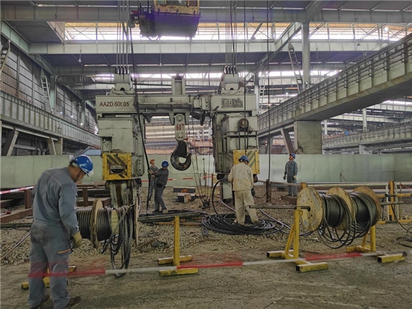 此次定修的主要項(xiàng)目有:板坯庫S2跨軌道緊固調(diào)整壓板更換、1號(hào)行車卷揚(yáng)鋼絲繩更換、5號(hào)行車大車限位開關(guān)更換、3至7號(hào)行車夾鉗半圓滑塊拆檢給脂和行車及夾鉗緊固潤滑調(diào)整、43號(hào)行車各機(jī)構(gòu)電動(dòng)機(jī)及渦流制動(dòng)器常規(guī)維護(hù)、31號(hào)行車主卷制動(dòng)輪聯(lián)軸器更換、7號(hào)行車拖鏈更換調(diào)整等內(nèi)容,此次定修是設(shè)備安全度夏的集中維護(hù)。由于此次定修正處入夏初期高溫天氣以及“安全生產(chǎn)月”開始,為此中冶寶鋼基層單位結(jié)合公司“安全生產(chǎn)月”活動(dòng)要求,嚴(yán)把定修安全管控關(guān),首先做好安全教育和交底工作,講清項(xiàng)目內(nèi)容和危險(xiǎn)源,講明白安全防護(hù)措施和管理要求,嚴(yán)格檢查上場工裝器具的合規(guī)性以及防暑降溫工作的落實(shí)到位情況,同時(shí)根據(jù)行車檢修高處作業(yè)的特性,著重跟蹤好作業(yè)過程的防墜落措施和維修作業(yè)標(biāo)準(zhǔn)的規(guī)范性,確保項(xiàng)目進(jìn)度質(zhì)量與人員安全受控。