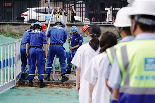 項(xiàng)目聯(lián)合青島紅十字藍(lán)天救援隊(duì)、嶗山區(qū)衛(wèi)生健康局,現(xiàn)場(chǎng)模擬開展對(duì)管廊內(nèi)中毒窒息人員和基坑坍塌被埋人員救援演練。