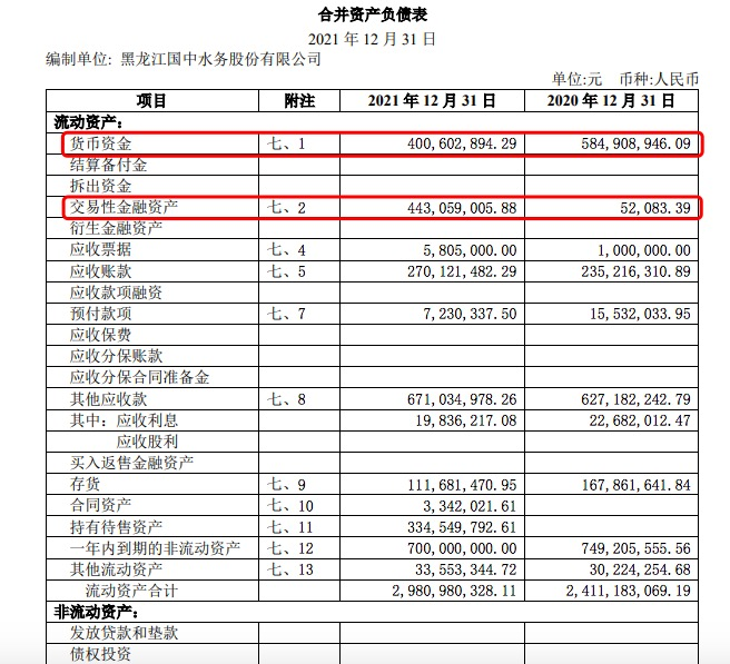 資金方面,截至2021年年末,國中水務(wù)流動資產(chǎn)合計29.81億元,其中貨幣資金4.01億元,主要為銀行存款;交易性金融資產(chǎn)為4.43億元,主要為銀行理財產(chǎn)品。