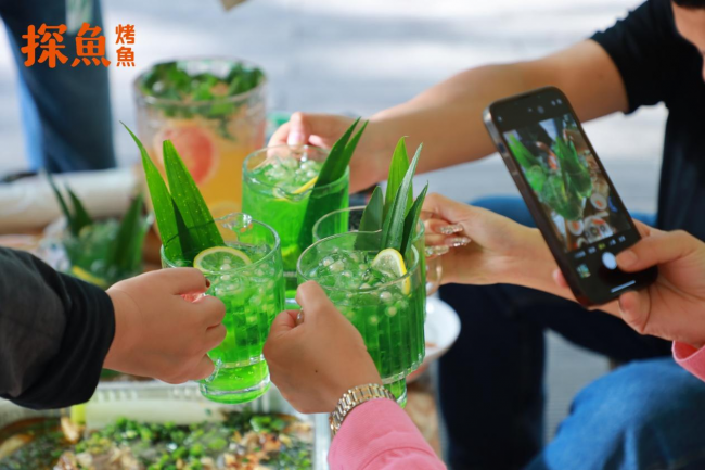 本次探魚露營(yíng)品鑒會(huì),探魚準(zhǔn)備了四月推出的新品——鮮青椒蔥蔥烤魚。新鮮的紅蔥搭配整根新鮮大蔥,讓香蔥+藤椒味型的鮮青椒蔥蔥烤魚爽麻加蔥香雙重過癮;搭配系列新品現(xiàn)場(chǎng)體驗(yàn)十分豐富:活力滿滿的飲品斑斕的綠,搗搗搗釋放壓力的小吃牛油果擂椒皮蛋,和口感脆爽治愈的輔菜鮮箭筍。品鑒會(huì)更設(shè)置了可以無限續(xù)加的自助暢飲區(qū),大好春光環(huán)繞之下,到場(chǎng)嘉賓沉浸式體驗(yàn)到美食品鑒之樂,新產(chǎn)品獲得大家一致喜愛,紛紛拍照打卡,解鎖探魚露營(yíng)美食之旅。