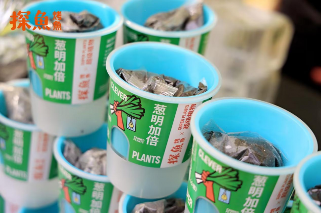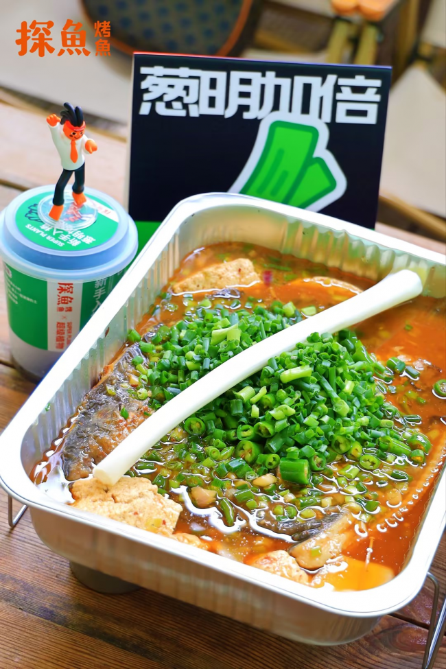 在產(chǎn)品研發(fā)上,探魚也充分考慮了顧客在感官、味覺、互動(dòng)等多方面的場(chǎng)景體驗(yàn),最新推出的“鮮青椒蔥蔥烤魚”就充分體現(xiàn)了這一點(diǎn)。鮮青椒蔥蔥烤魚在創(chuàng)新理念上,是探魚招牌口味“鮮青椒爽麻烤魚”口味的味型升級(jí),在藤椒口味的基礎(chǔ)上增加時(shí)令性的蔥香風(fēng)味,一經(jīng)推出,就頗受大眾喜愛。據(jù)悉,新品上市7天,已經(jīng)比去年同期上新的烤魚銷量上漲105%。在產(chǎn)品呈現(xiàn)上,新品上餐時(shí)配上一整棵鮮甜大蔥,然后由服務(wù)人員現(xiàn)場(chǎng)進(jìn)行“剪蔥儀式”,將蔥段下入鍋內(nèi),提味增香,同時(shí)為消費(fèi)者營(yíng)造一種新奇特的體驗(yàn)感。除此之外,探魚借勢(shì)本次上新,與最近大熱的植物品牌“超級(jí)植物公司”聯(lián)名推出可以種出小蔥的“蔥明種子卡”,不僅深化蔥的產(chǎn)品主題,還收獲了目標(biāo)客群“打工人”的情感共鳴。
