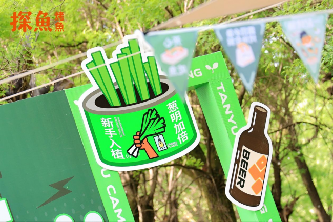 此外,露營(yíng)活動(dòng)現(xiàn)場(chǎng)還搭建“探魚品牌時(shí)光墻”,清晰呈現(xiàn)出探魚品牌成立至今的點(diǎn)點(diǎn)滴滴,將一個(gè)有趣的品牌形象變化歷程,完整地展現(xiàn)在來賓面前?;顒?dòng)中,探魚還準(zhǔn)備了各種趣味游戲,包括搖骰子入座、大撲克游戲、蔥蔥聯(lián)名種子卡體驗(yàn),還有探魚周邊盲盒、大魚樂撲克牌等精美禮品。多種在露營(yíng)場(chǎng)景下的趣味活動(dòng),調(diào)動(dòng)著現(xiàn)場(chǎng)來賓們的感官和興趣,露營(yíng)氛圍和新品美食,都在這一刻拉近了品牌與用戶的距離,向各位美食愛好者傳遞有趣的品牌能量。