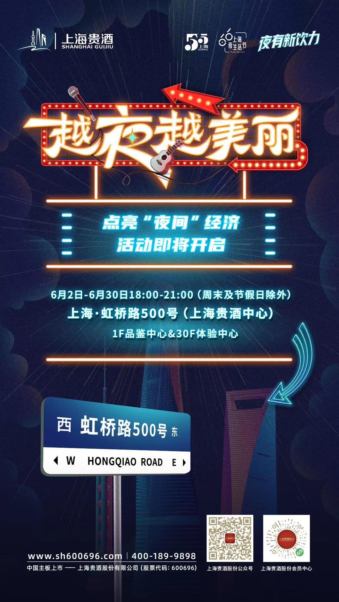 上海貴酒創(chuàng)新策劃的“虹橋路500號(hào)越夜越美麗”點(diǎn)亮“夜間”經(jīng)濟(jì)系列活動(dòng)也將從6月2日啟幕,橫跨整個(gè)6月,邀請(qǐng)品牌摯友齊聚虹橋路500號(hào)——上海貴酒徐匯品鑒中心和體驗(yàn)中心,點(diǎn)亮商圈潮流新“夜”態(tài),“飲”燃消費(fèi)新活力。從沉浸品鑒、花式特調(diào)到音樂(lè)、美食、青春街舞、房車生活,上海貴酒不斷打破創(chuàng)新邊界,將上海精神和品牌元素融入活動(dòng)設(shè)計(jì)中,打造出更高品質(zhì)、差異化的夜間消費(fèi)場(chǎng)景,在夜色中點(diǎn)亮城市文化名片,讓魔都“越夜越美麗”!