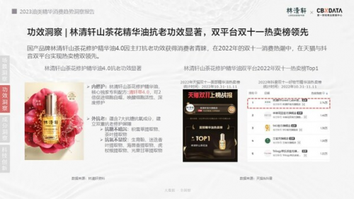 根據(jù)第一財(cái)經(jīng)商業(yè)數(shù)據(jù)中心的發(fā)布《2023油類(lèi)精華消費(fèi)趨勢(shì)洞察報(bào)告》 中指出,精華油、以油養(yǎng)膚,以及"抗老精華油"的概念在小紅書(shū)、抖音等社交平臺(tái)的搜索指數(shù)不斷攀升,小紅書(shū)上"以油養(yǎng)膚"話題的瀏覽總量超過(guò)了1.2億,過(guò)去一年線上淘寶天貓及京東平臺(tái)精華油銷(xiāo)售額同比增速達(dá)64%。在國(guó)內(nèi)外品牌紛紛跟進(jìn)推出油類(lèi)護(hù)膚產(chǎn)品之際,林清軒憑借山茶花油的提前布局,借勢(shì)快速進(jìn)入爆發(fā)期。