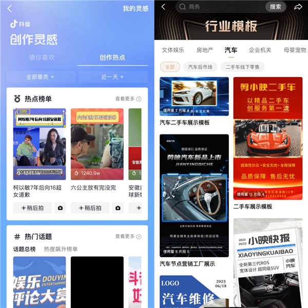 關(guān)注剪映剪同款熱榜,將熱門音樂(lè)和文案與汽車內(nèi)容相結(jié)合,以創(chuàng)造出引人注目的效果。