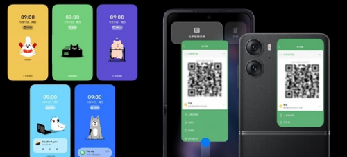 OPPO Find N2 Flip外屏寵物則是卡通版,也很可愛(ài),應(yīng)用雙屏同開(kāi)的功能很出彩,一邊用內(nèi)屏回消息,一邊展示外屏二維碼進(jìn)行掃碼,太方便了。