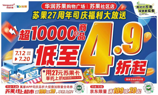 響應(yīng)政府促消費(fèi)擴(kuò)內(nèi)需,進(jìn)一步激發(fā)市場活力的號召。蘇果于7月12日-7月20日期間,將打造為期9天的司慶購物節(jié),聯(lián)合百家重點(diǎn)廠商推出10000余商品4.9折起、會員超值換購、跨界合作等一攬子促消費(fèi)舉措,同時(shí)賦能商品力,全方位升級購物體驗(yàn),屆時(shí)將釋放新一輪消費(fèi)潛力。