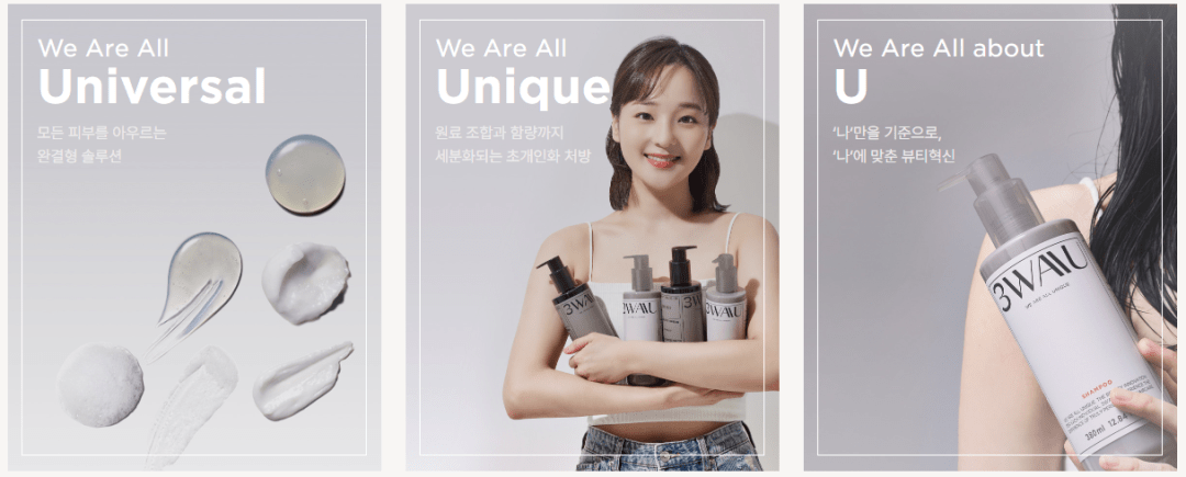 3WAAU是韓國COSMAX科絲美詩今年3月推出的定制型化妝品平臺。WAAU取自We Are All Unique的縮寫,包含了面向個人化·細分化化妝品市場的服務理念。