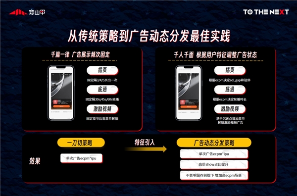 ▎閱讀行業(yè):?為避免過往千篇一律的廣告展示影響用戶體驗,穿山甲基于GroMore獨(dú)特的用戶價值分組能力,借助用戶所看書籍類型、閱讀速度、在線時長、累計觀看廣告數(shù)量等不同參數(shù),為開發(fā)者建立了一套用戶分層策略。通過“廣告動態(tài)分發(fā)”,根據(jù)用戶特征及時調(diào)整廣告狀態(tài),在不影響用戶留存的情況下進(jìn)一步提升廣告arpu,實現(xiàn)LTV最大化。
