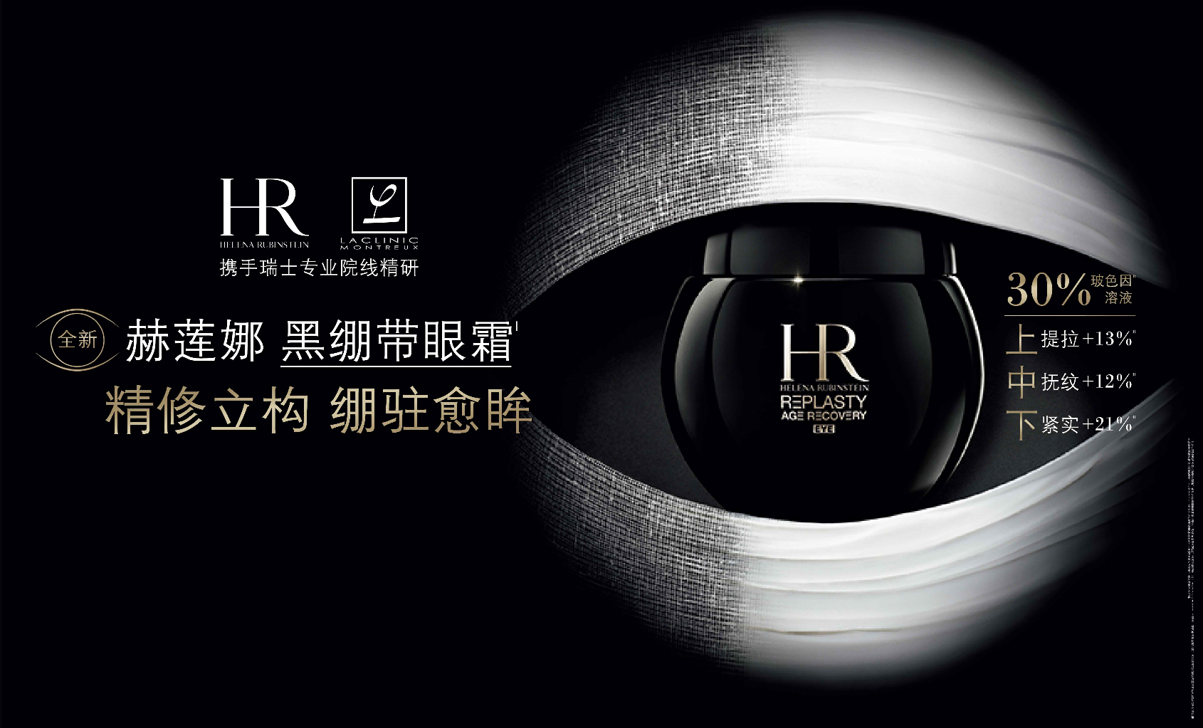 百年奢美護(hù)膚品牌HR赫蓮娜堅(jiān)守尖端科技、不斷開(kāi)拓前沿美容疆土。再度聯(lián)合瑞士蒙特勒高端肌膚抗老機(jī)構(gòu)LACLINIC-MONTREUX,基于特殊美容項(xiàng)目專研的全新眼部繃帶力作——黑繃帶眼霜首次在國(guó)內(nèi)重磅亮相,革新突破性的眼周修護(hù)式抗老理念,攻克眼周護(hù)理難題。
