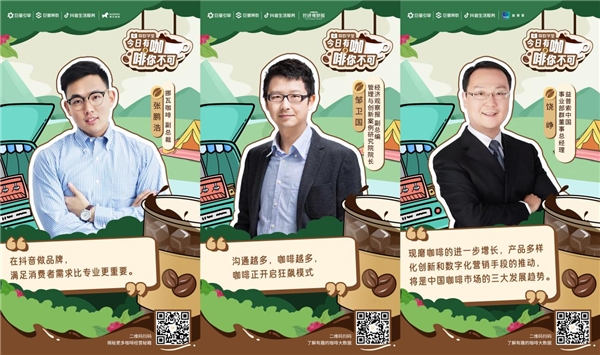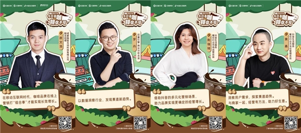 為此《算數(shù)學(xué)堂》重磅推出《今日有咖·啡你不可》欄目,聚焦咖啡賽道,為品牌商家們指點(diǎn)迷津,并邀請(qǐng)了8位重磅嘉賓,專業(yè)覆蓋咖啡生態(tài)各個(gè)環(huán)節(jié),包括消費(fèi)行業(yè)專家2位、咖啡品牌商家代表2家、品牌代理服務(wù)商1家、抖音生活服務(wù)專家2位、巨量引擎商業(yè)分析1位,他們將分別從各自的領(lǐng)域出發(fā),分享有關(guān)咖啡行業(yè)未來(lái)趨勢(shì)、品牌經(jīng)營(yíng)方法論、抖音平臺(tái)數(shù)字化營(yíng)銷秘籍等真知灼見。