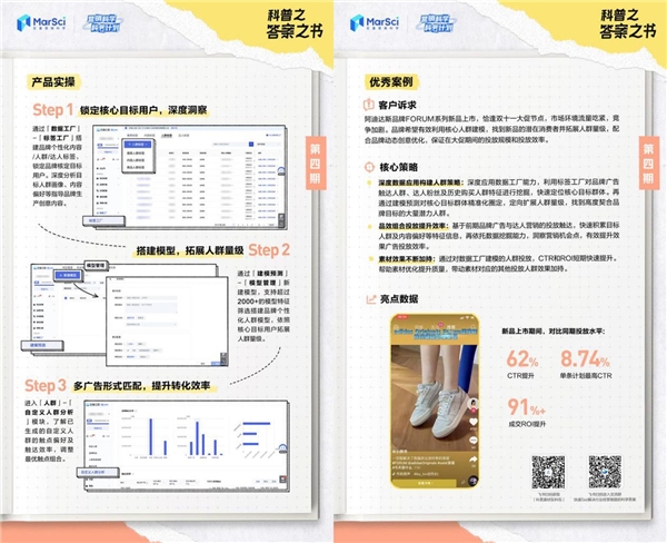 本期的「科普之答案之書」正是以服飾行業(yè)的新品上市營(yíng)銷節(jié)點(diǎn)為例,品牌結(jié)合“數(shù)據(jù)工廠”中的“標(biāo)簽工廠”“建模預(yù)測(cè)”等能力,通過(guò)“一鎖定、二擴(kuò)展、三提效”的經(jīng)營(yíng)策略,在雙十一大促節(jié)點(diǎn)準(zhǔn)確找到了新品核心用戶和潛在消費(fèi)者,同時(shí)配合品牌動(dòng)態(tài)創(chuàng)意優(yōu)化,保證在大促期間的投放規(guī)模和投放效率,最終實(shí)現(xiàn)了CTR與ROI的大幅度提升。