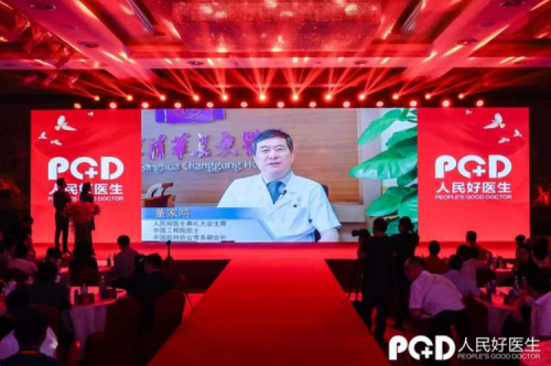 人民好醫(yī)生公益典禮大會(huì)主席,中國(guó)工程院院士、中國(guó)醫(yī)師協(xié)會(huì)常務(wù)副會(huì)長(zhǎng)、北京清華長(zhǎng)庚醫(yī)院院長(zhǎng)董家鴻為大會(huì)作了視頻致辭。他代表人民好醫(yī)生組委會(huì)向本屆61位年度“人民好醫(yī)生”表示熱烈的祝賀。贊揚(yáng)他們有精誠(chéng)為業(yè)、仁愛(ài)為醫(yī)的高尚醫(yī)德;有精益求精、一絲不茍的敬業(yè)精神;有關(guān)愛(ài)患者、廉潔自律的職業(yè)操守。