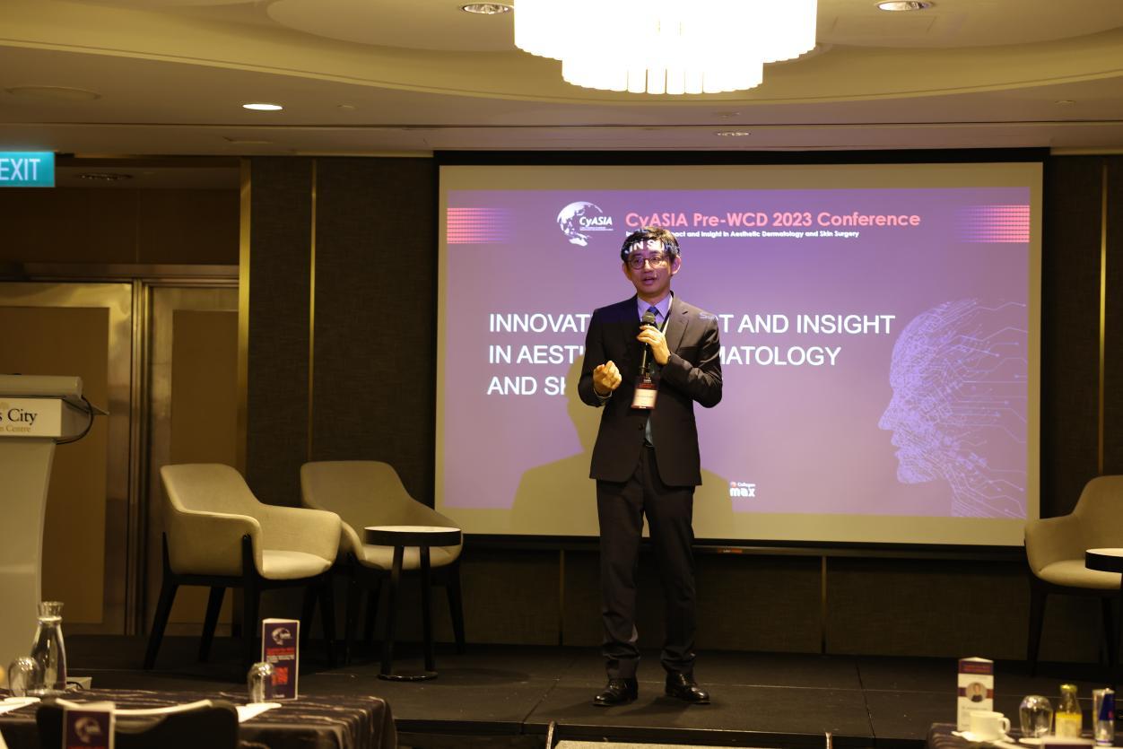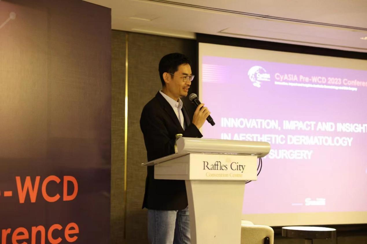 雙美生物科技股份有限公司總經(jīng)理林明毅先生在大會(huì)開幕式中致辭,他代表雙美對(duì)本次WCD會(huì)前研討會(huì)的組織者黃柏翰醫(yī)師及其他各位醫(yī)師表示衷心感謝,也很榮幸能贊助這次精彩的學(xué)術(shù)活動(dòng)。林先生表示:近年來,膠原蛋白填充劑市場(chǎng)增長(zhǎng)迅速,越來越多的醫(yī)生和求美者被它的獨(dú)特優(yōu)勢(shì)所吸引,Sunmax雙美深耕于膠原蛋白填充產(chǎn)品多年,今年攜Deusaderm進(jìn)入新加坡市場(chǎng),相信此次通過現(xiàn)場(chǎng)專家們的分享與討論,一定可以使這款產(chǎn)品得到更多專家同道的認(rèn)可。雙美同時(shí)也希望借助CyASIA Pre-WCD這個(gè)國(guó)際化平臺(tái),與更多國(guó)際領(lǐng)先的專家學(xué)者分享雙美膠原蛋白的優(yōu)勢(shì)及未來發(fā)展愿景,學(xué)習(xí)和借鑒國(guó)際前沿診療技術(shù)和理念,助力雙美產(chǎn)品走向世界,造福更多求美者!