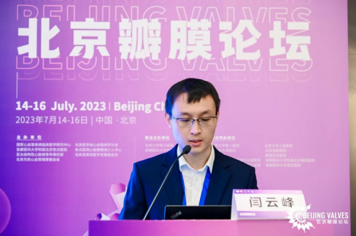 首都醫(yī)科大學(xué)附屬北京安貞醫(yī)院閆云峰教授此次分享的則是一例特殊的急診TAVR治療病例。患者為59歲女性,急診入院診斷為主動(dòng)脈瓣重度狹窄、心力衰竭、肺部感染,既往糖尿病史,STS評(píng)分25.59%。入院超聲測(cè)量平均跨瓣壓差63 mmHg,峰值流速5.13 m/s,LVEF 20%,實(shí)驗(yàn)室檢查結(jié)果提示炎癥指標(biāo)較高、血流動(dòng)力學(xué)不穩(wěn)定,BNP>5009 pg/ml;急診平掃CT提示肺部滲出、心臟較大且主動(dòng)脈瓣區(qū)域鈣化明顯。入院后積極藥物治療,第六日患者突發(fā)循環(huán)崩潰,遂立即在氣管插管及ECMO輔助下行急診TAVR治療。術(shù)前平掃CT可見主動(dòng)脈瓣環(huán)、瓣葉及主動(dòng)脈壁均存在部分鈣化,屬Type 0型二葉瓣,主動(dòng)脈瓣環(huán)徑24.1 mm,LVOT直徑29.0 mm,STJ 35.5 mm,升主動(dòng)脈直徑44.4 mm,左冠高度11.7 mm、右冠高度22.1 mm,瓣環(huán)上6~10 mm存在明顯限制區(qū)。綜合考慮后選擇在TEE引導(dǎo)下完成手術(shù),采用18 mm球囊預(yù)擴(kuò)時(shí)可見明顯腰征且無瓣周漏,隨后成功植入一枚23 mm VenusA-Pro瓣膜,球囊后擴(kuò)后造影復(fù)查僅可觀察到少量瓣周漏、瓣膜展開充分,患者心臟功能也較前明顯改善,EF 55.9%,無傳導(dǎo)阻滯事件發(fā)生。術(shù)后3月隨訪EF升至65%,峰值流速2.1 m/s,平均跨瓣壓差16 mmHg。