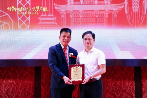 會(huì)長(zhǎng)徐澄清為第一屆青年委員會(huì)會(huì)長(zhǎng)陳燕成授牌