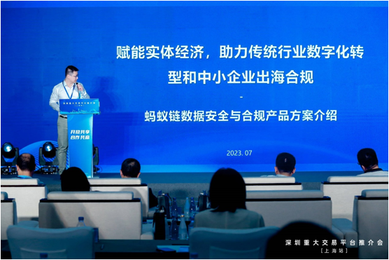 螞蟻集團數字科技事業(yè)群數據安全解決方案總監(jiān)馮飛進行螞蟻安全產品-螞蟻鏈數據安全與合規(guī)產品的推介宣講,此次選擇上市深數所的其中一款螞蟻鏈數據安全與合規(guī)產品(上市名稱:數據安全保護傘),是一款針對政務、金融、汽車、互聯網等機構的數據治理、安全及合規(guī)需求的安全產品,可幫助客戶實現數據的分類分級、防泄露、安全合規(guī)治理、流轉安全和跨境合規(guī)等能力,推動數據交易賦能實體經濟、助力傳統行業(yè)數字化轉型。