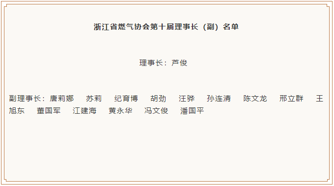 浙江省燃?xì)鈪f(xié)會(huì)第十屆常務(wù)理事單位名單