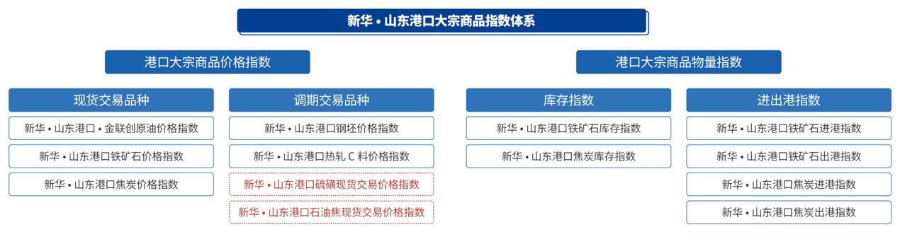 新華·山東港口大宗商品指數(shù)由中國(guó)經(jīng)濟(jì)信息社聯(lián)合山東省港口集團(tuán)共同發(fā)布,2021年首次發(fā)布后不斷升級(jí)完善,形成了價(jià)格指數(shù)、庫(kù)存指數(shù)和進(jìn)出港指數(shù)綜合體系。2023年指數(shù)再度擴(kuò)容,新增硫磺現(xiàn)貨交易價(jià)格指數(shù)和石油焦現(xiàn)貨交易價(jià)格指數(shù)的發(fā)布。此次擴(kuò)容后,指數(shù)體系包括原油、鐵礦石、焦炭、鋼坯、熱軋C料、硫磺現(xiàn)貨交易和石油焦現(xiàn)貨交易七只價(jià)格指數(shù),以及鐵礦石庫(kù)存、焦炭庫(kù)存、鐵礦石進(jìn)港、鐵礦石出港、焦炭進(jìn)港、焦炭出港六只物量指數(shù)。
